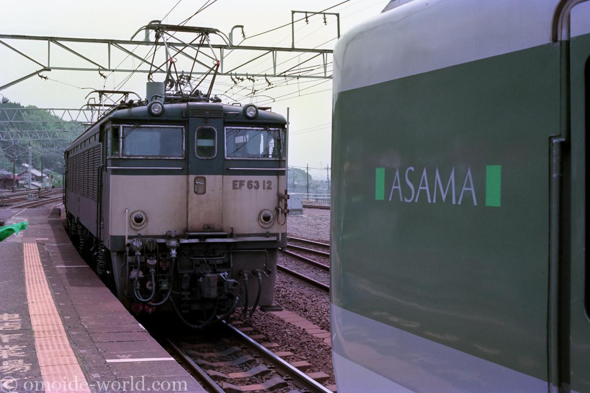 特急「あさま」が到着するとEF63が連結されます。
