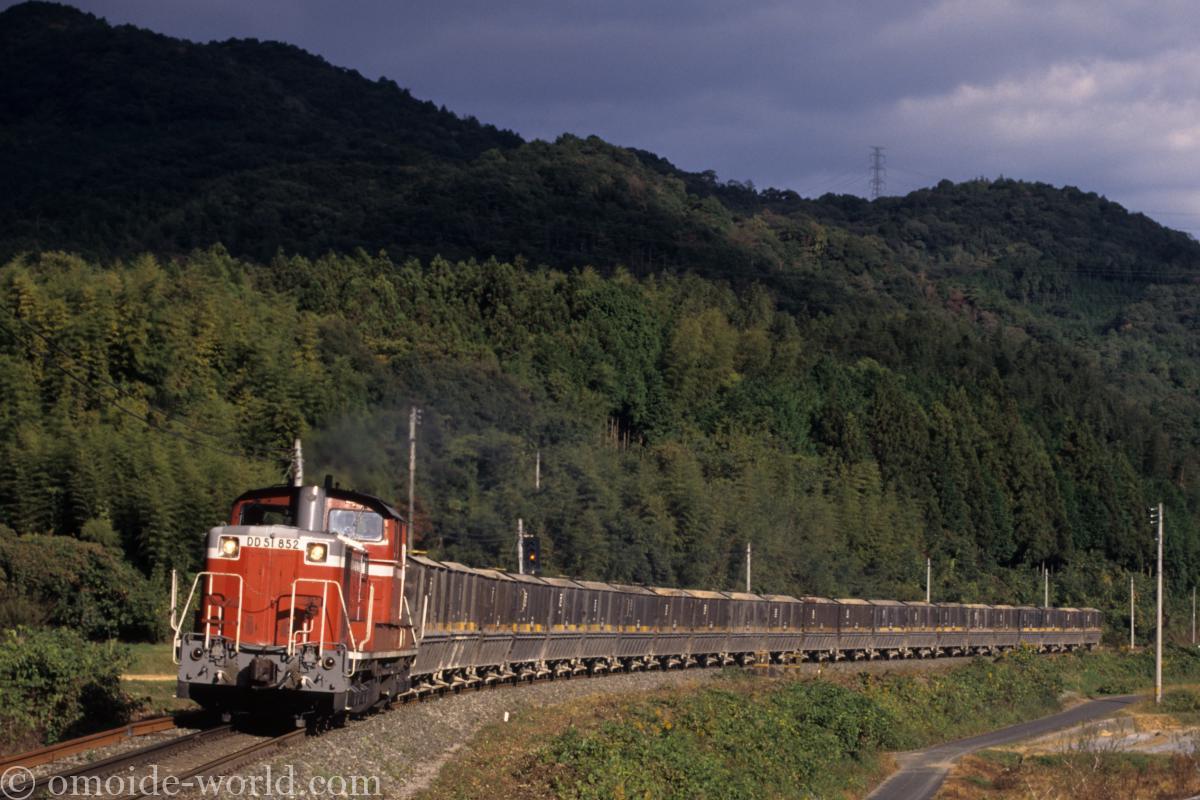 美祢線ではセキ8000形式22両をDD51が牽引する石灰石輸送貨物が運行していました。