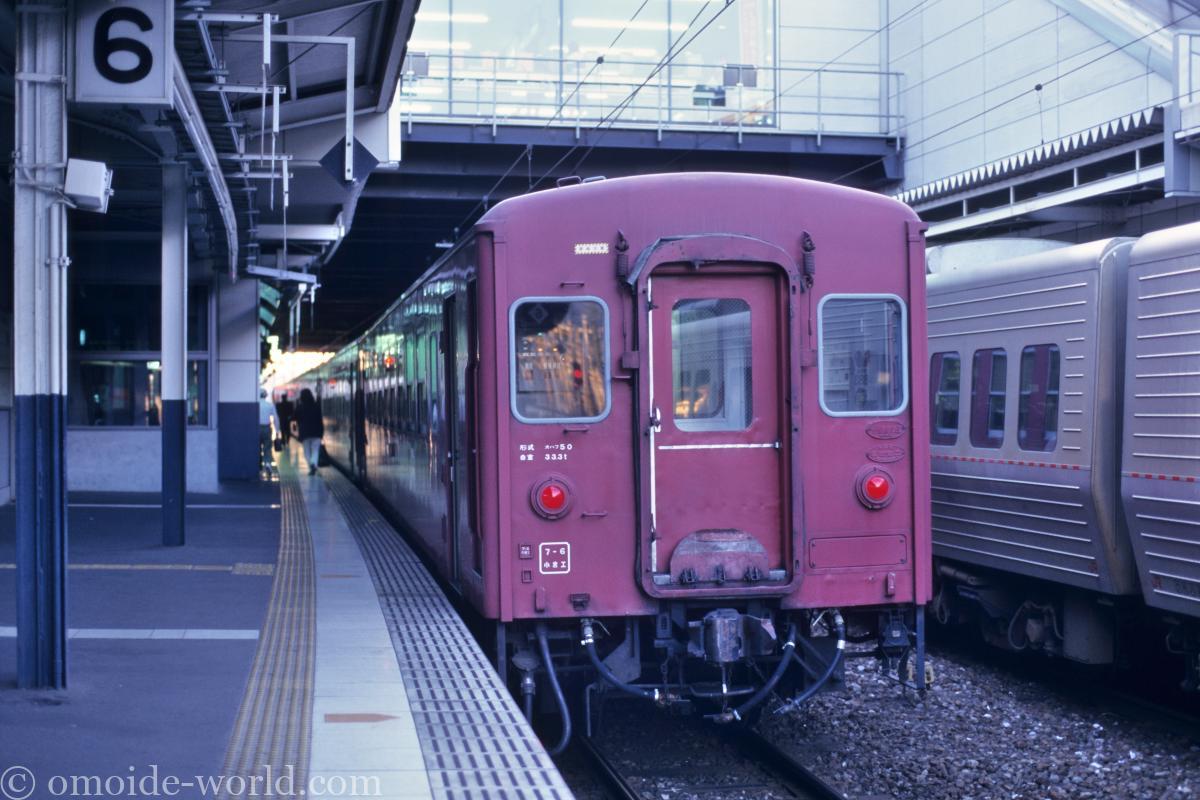 DD51に牽引された50系客車が小倉駅に入線中です。