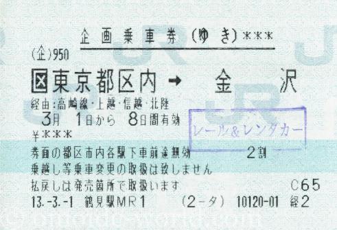 東京都区内から高岡駅まで利用した乗車券です。